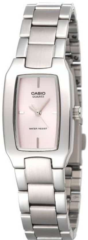 7- ساعة LTP-V001G-9Bمن CASIO كاسيو، تتميز بحجمها الصغير وكونها مقاومة للماء، لكن البطارية لا تمكث فترة طويلة.
